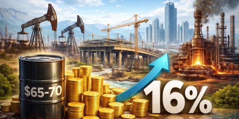 Рост экономики по-прежнему будет опираться на ограниченный круг отраслей. Нефтегазовый сектор формирует около 16% ВВП и остаётся ключевым, однако его вклад в рост в 2026 году будет скорее поддерживающим, чем ускоряющим, поскольку резкого роста добычи не ожидается. Инфраструктурное строительство формирует сравнительно небольшую долю экономики, но вносит заметный вклад в рост за счёт государственных и квазигосударственных инвестиций. В 2025 году строительная отрасль показала высокий рост на уровне 15,9%, однако в 2026 году темпы здесь, вероятно, будут более умеренными.