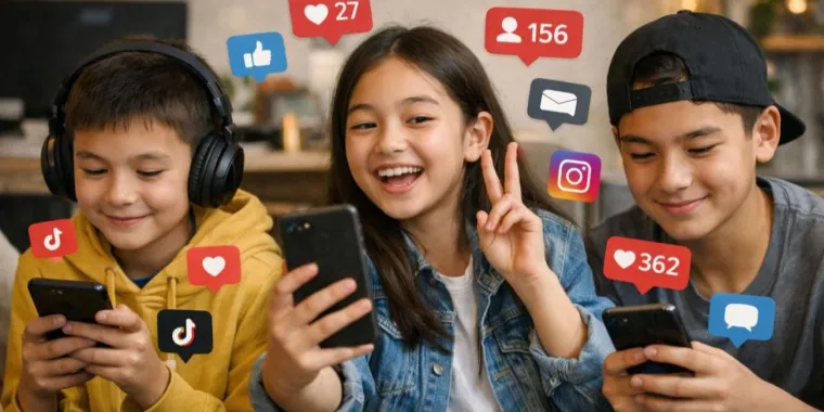 По данным исследования UNICEF “Kids Online Kazakhstan”, около 60% детей 9–10 лет уже имеют аккаунты в социальных сетях передает Aristocrat.biz.. Среди подростков 11–12 лет активные профили ведут примерно две трети.
